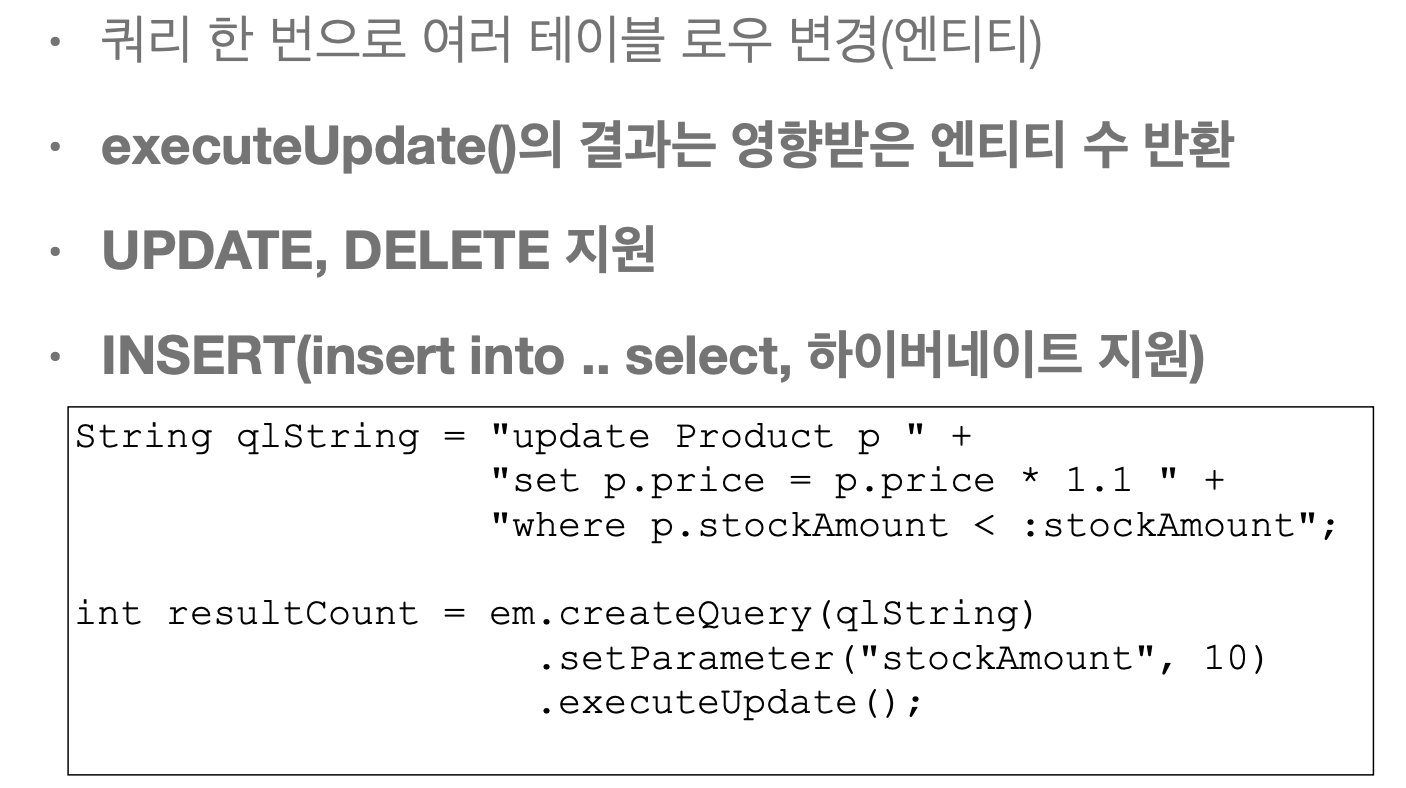 -> 벌크 연산 시 앞서 말한 문제점이 남아있다. ( entity manager 을 매번 clear 하는 것도 나름의 문제 존재 )