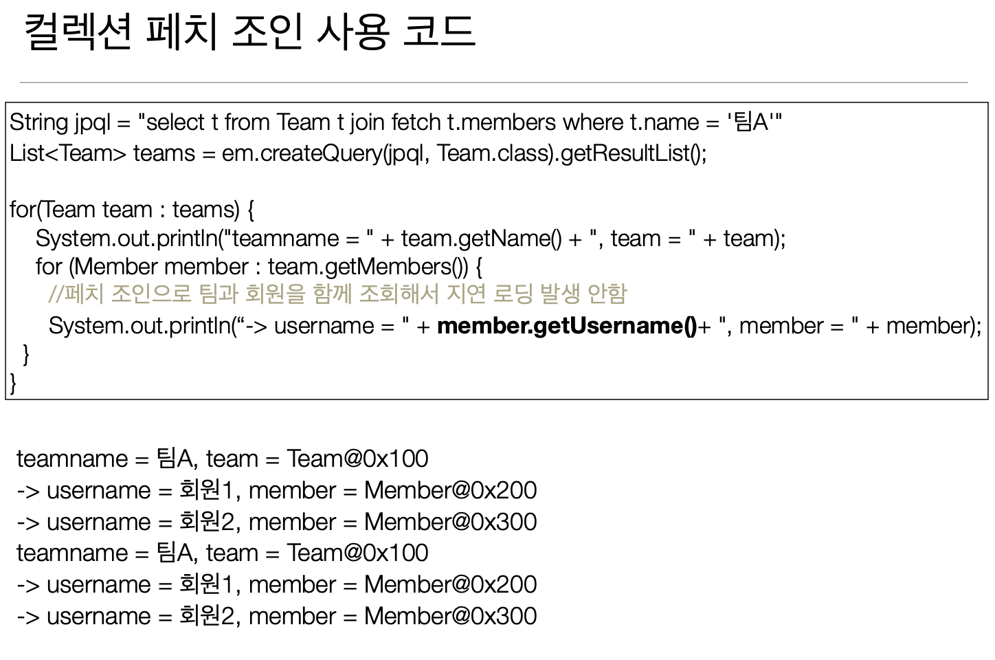 ** fetch join의 목적은 "객체 그래프 전체 탐색" 이다.
