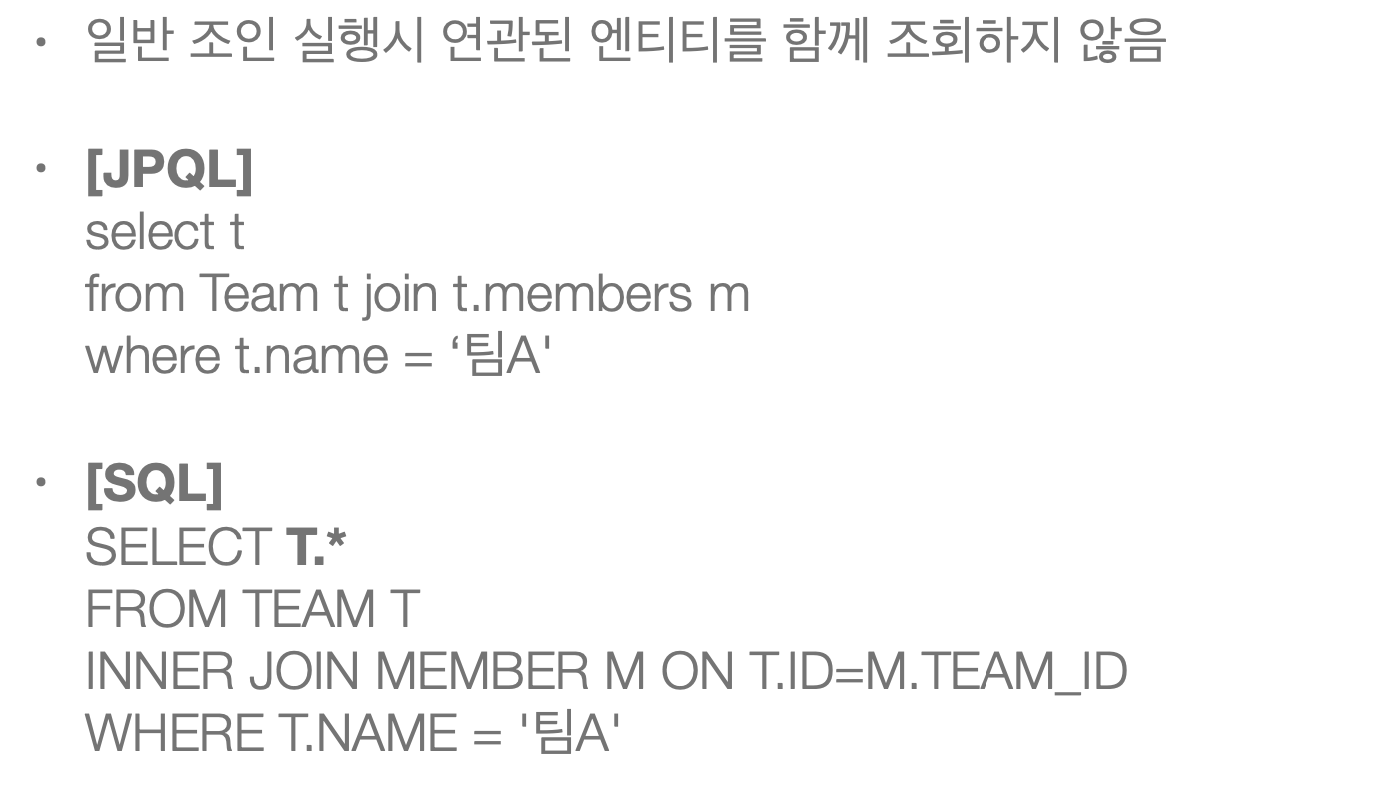 1) 그냥 join 사용 시: Lazy fetch 사용 시, Team을 당장 가져오지 않는다.