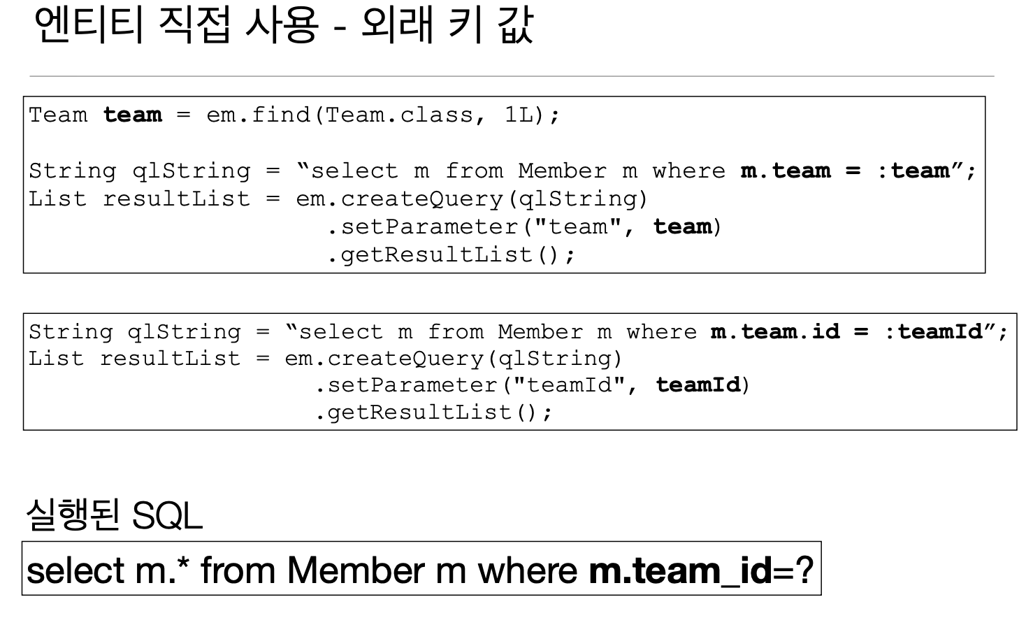 jpql에서 엔티티를 직접 사용하게 된다면?