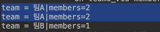 같은 Team A 이지만, 다른 회원 정보를 담고 있기에, 중복제거가 성립되지 않는다.