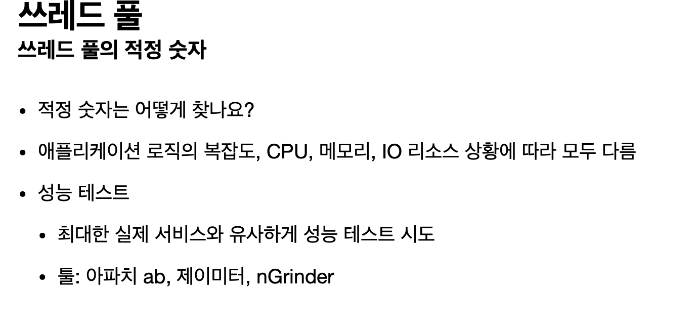 적절한 쓰레드 풀의 수는 결국 성능 테스트를 통해 찾아야한다.