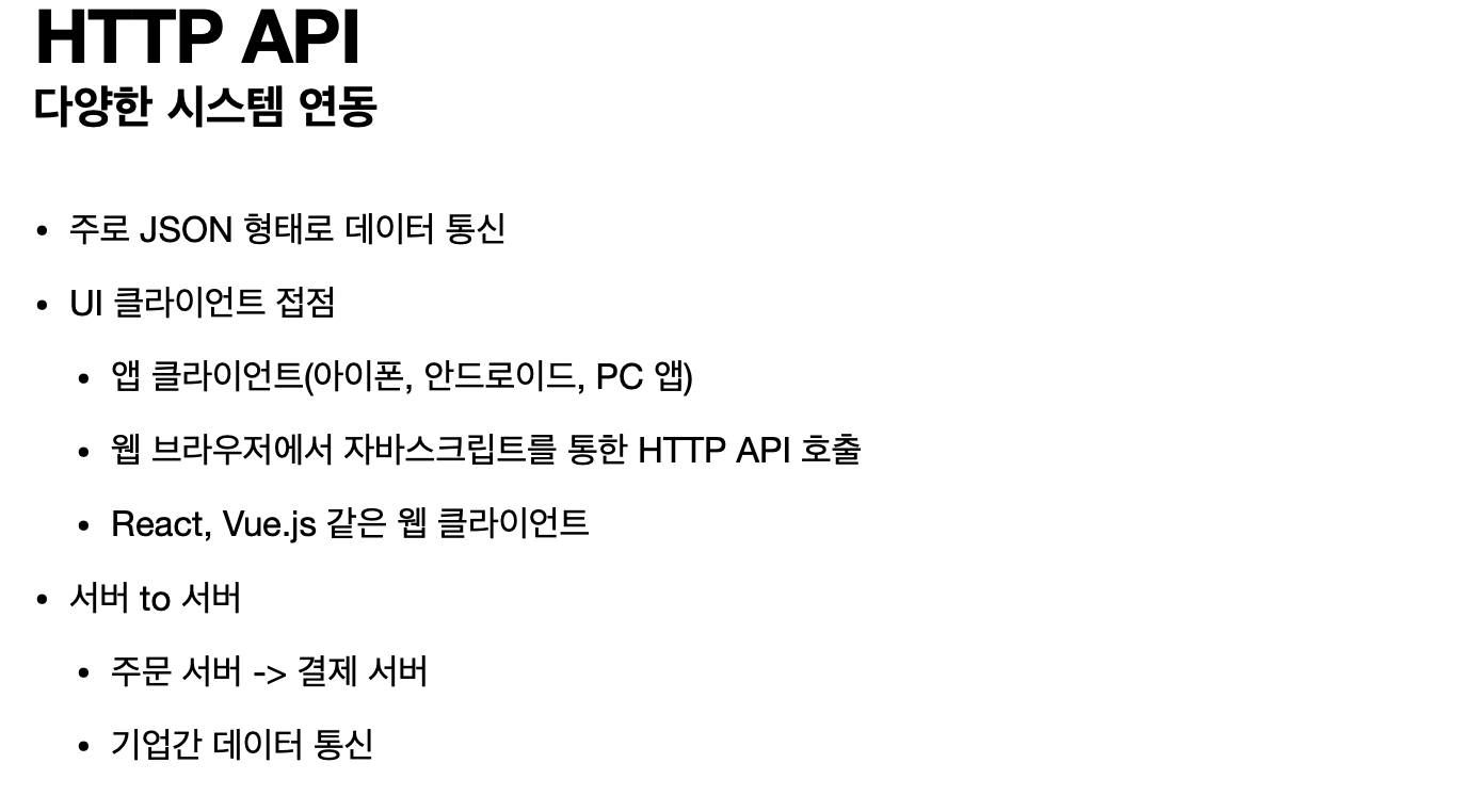 HTTP API: html이 아닌 데이터를 전달한다.