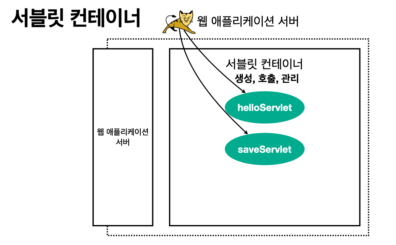톰캣처럼 서블릿을 지원하는 WAS를 서블릿 컨테이너라고 함