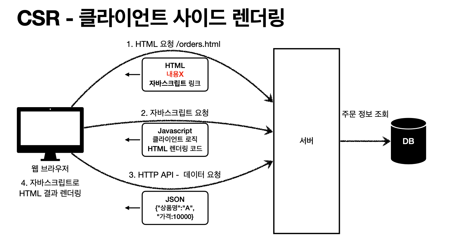 서버 사이드 렌더링: 결국 서버가 보내는 이미지의 연속 (느리게 보면 깜빡깜빡거리는 느낌)