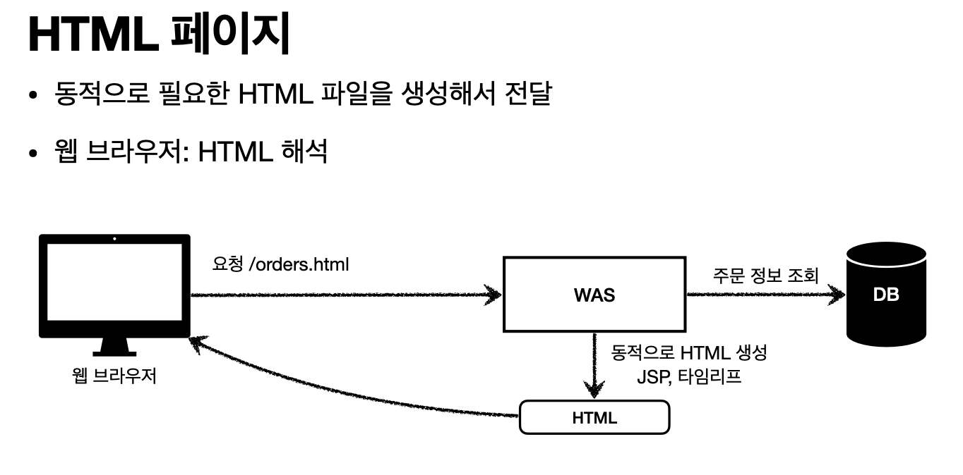 그때그때 동적으로 웹 페이지를 생성해서 보낸다.