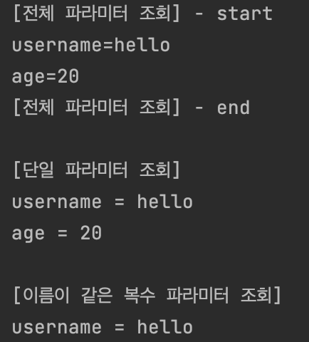 ~~~~~~/hello?username=shyswy ->. username, shyswy라는 key, value 쌍을 파라미터로 전달한다.
