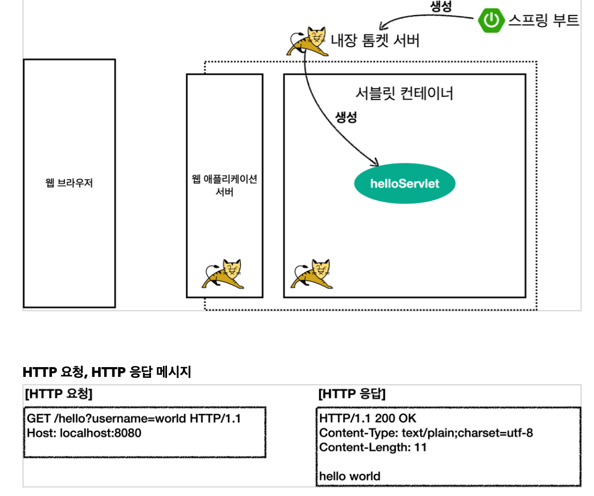 톰켓은 내부에 서블릿 컨테이너를 가지고 있다. 이를 통해 서블릿 생성(HelloServlet 생성)