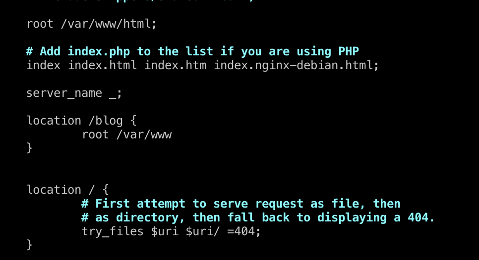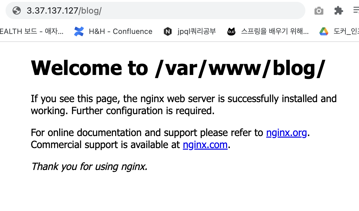 이제 ~~~~~/blog 는 root /var/www 에서 html 을 가져올 것이고