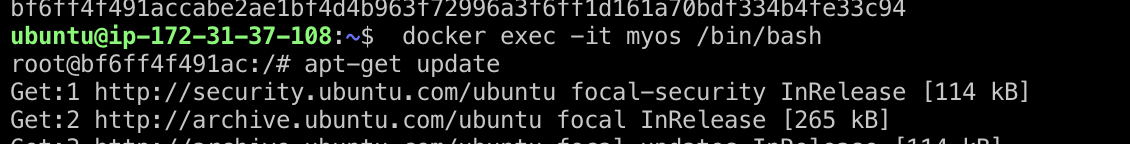 docker exec -it myos /bin/bash