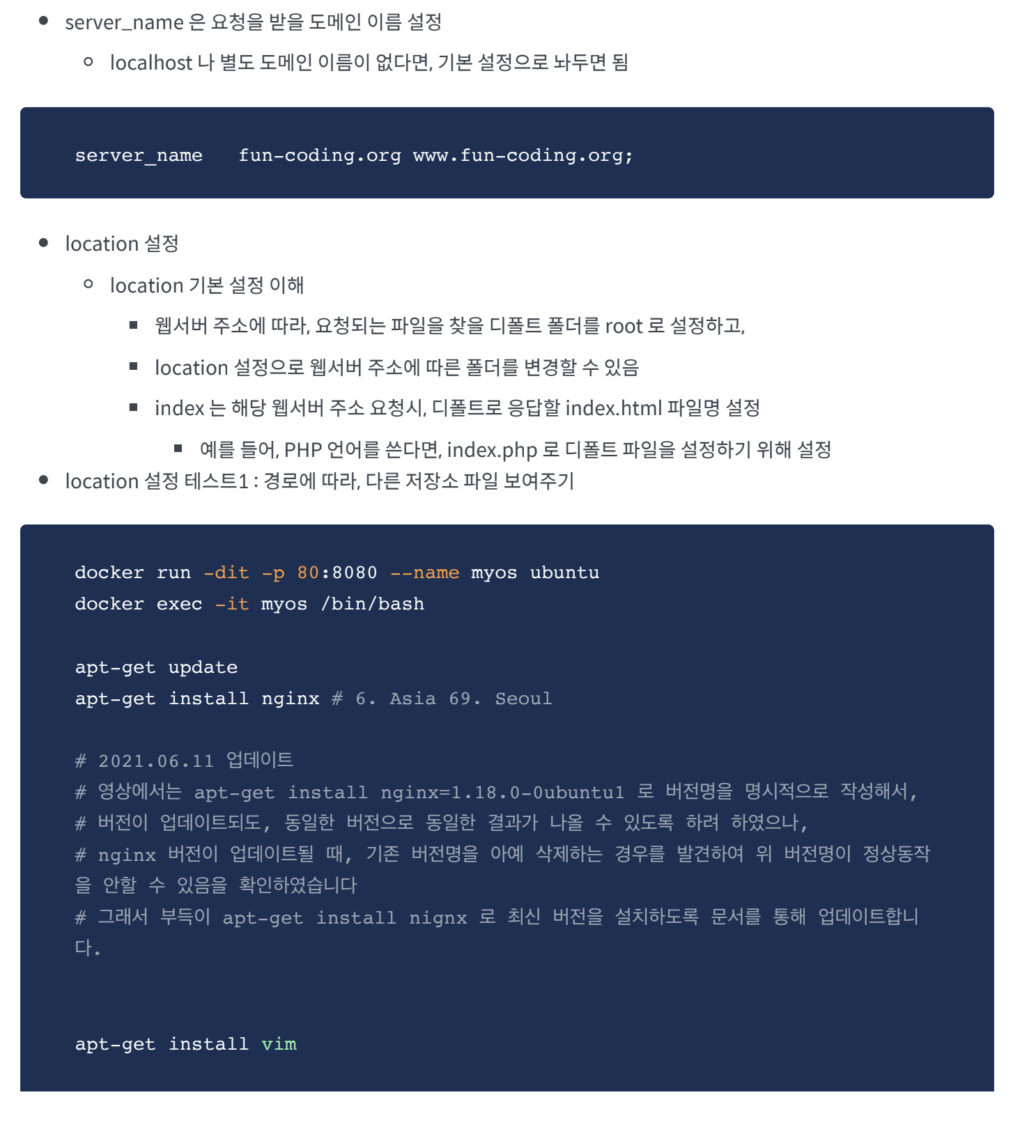 location이 지정되지 않는다면, root /var/www/html 의 경로를 따르지만, 특정 요청 url은 다른 경로에서 가져오도록 설정할 수 있다.