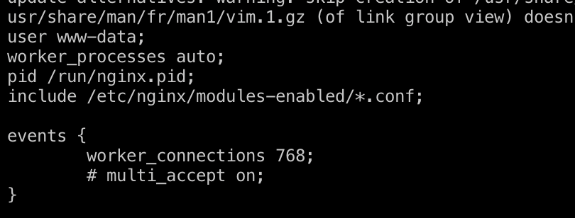설정 파일을 보면 worker_processes auto; 로, 기본적으로 프로세스의 개수는 자동으로 설정되어있다.