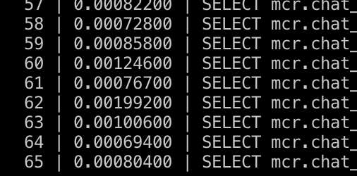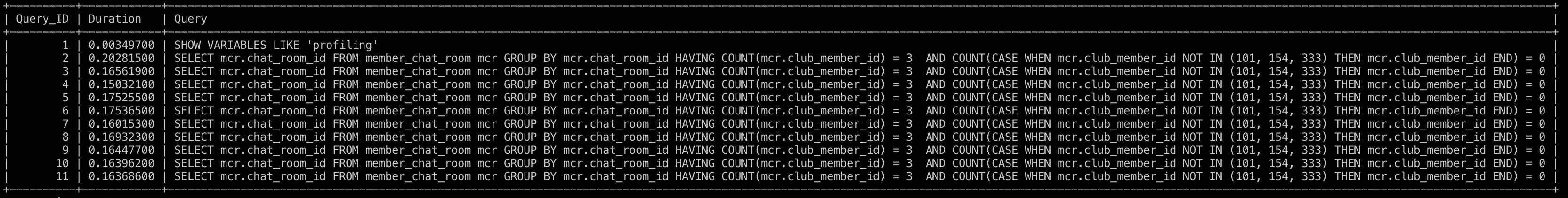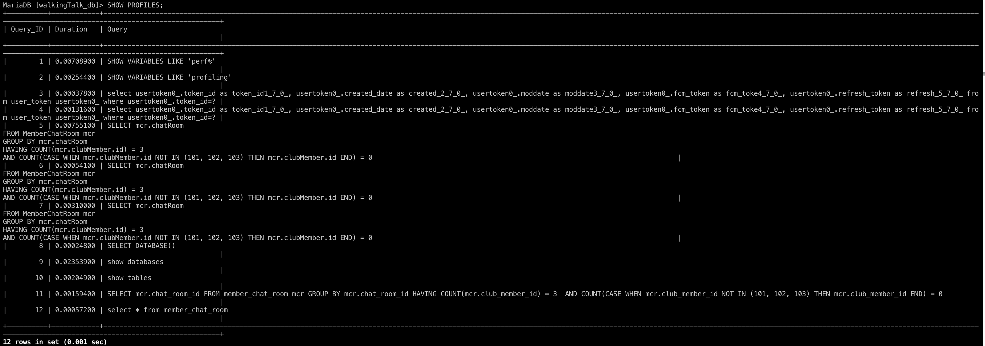 이제 특정쿼리를 실행하고 아래의 쿼리문 실행시 쿼리의 속도를 확인 가능하다.