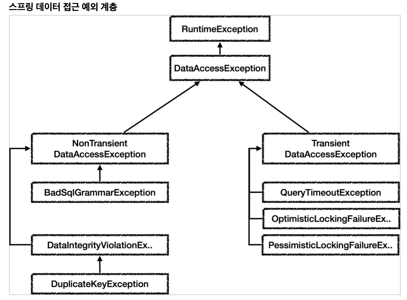 ex: SQL 문법이 잘못되었다면 BadSqlGrammarException 을 반환한다.