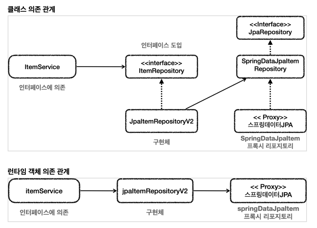 유지보수 관점에서 ItemService 를 변경하지 않고, ItemRepository 의 구현체를 변경할 수 있는 장점이 있다. 그러니까 DI, OCP 원칙을 지킬 수 있다는 좋은 점이 분명히 있다. 하지만 반대로 구조가 복잡해지면서 어댑터 코드와 실제 코드까지 함께 유지보수 해야 하는 어려움도 발생한다.