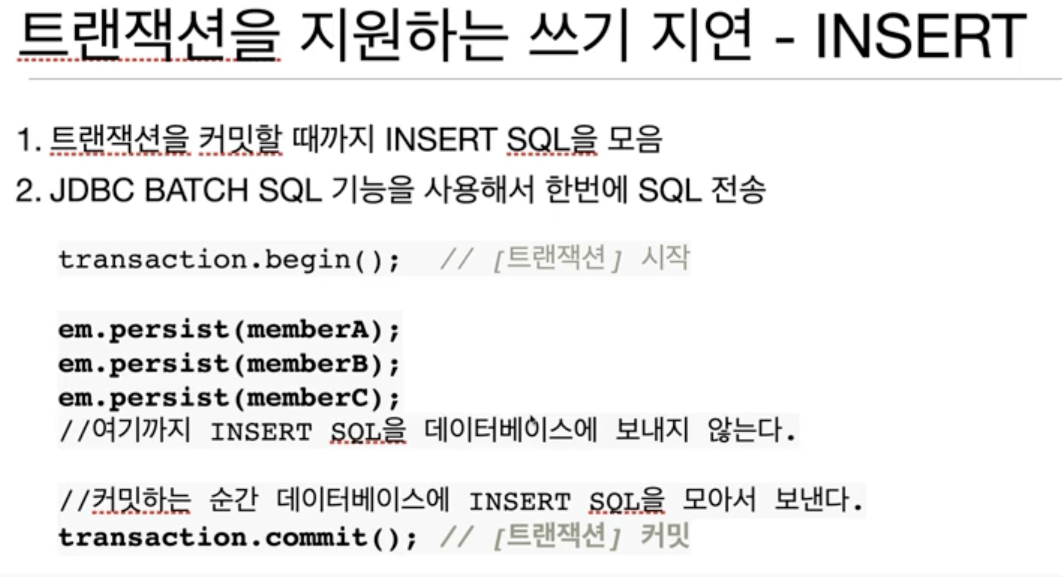 Write을 commit 시점에 몰아서 하는 것으로 자동으로 성능 최적화가 수행된다. (Delay Wriate)