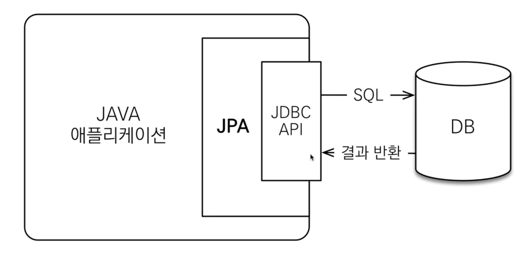 애플리케이션에서 JPA 사용 ->JPA가 jdbc API 를 사용 -> JDBC API가 SQL 생성하여 DB에 전달