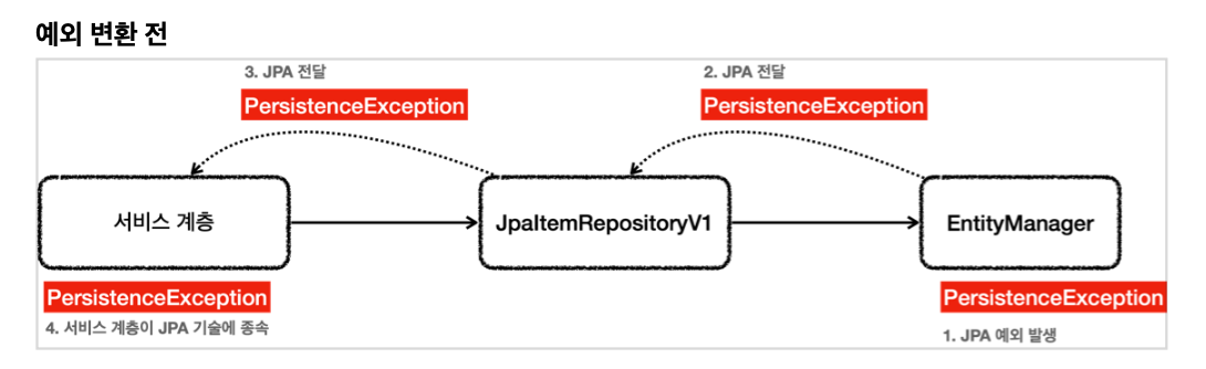 하지만 이 구조는 리포지토리의 구현 기술이 변경되면 수 많은 코드를 변경해야 하는 단점이 있다.
